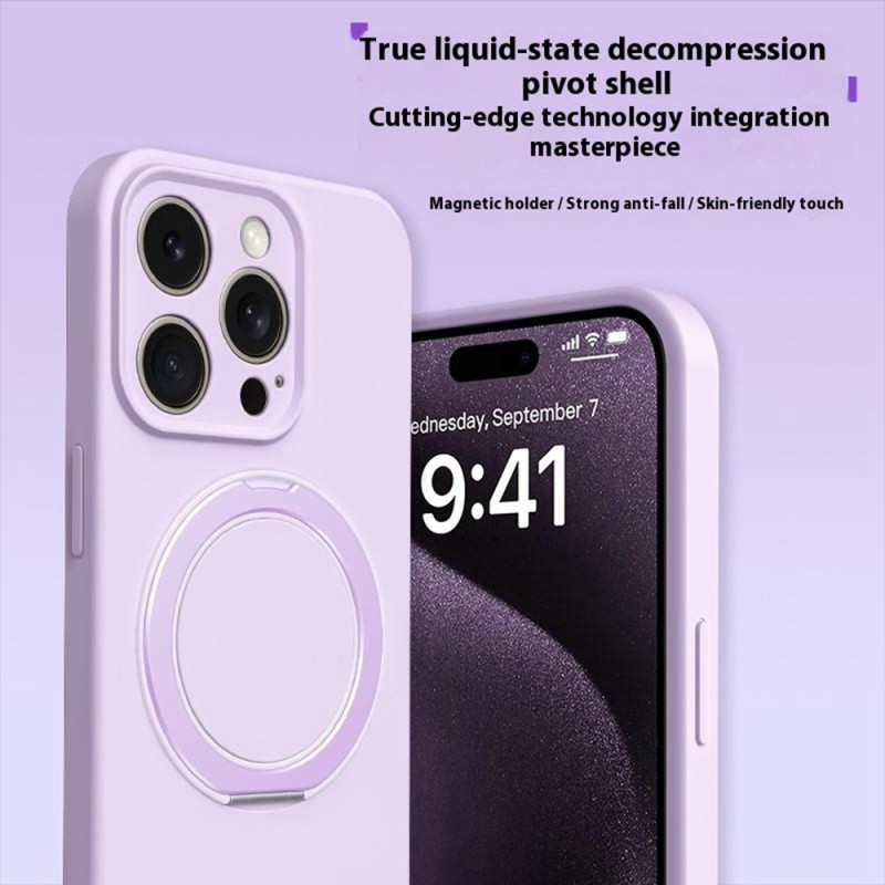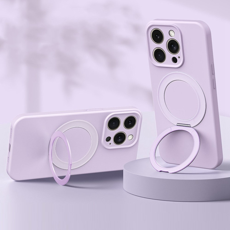 Coque magnétique compatible MagSafe pour iPhone 13 Pro avec support rotatif multi-angles. Conception en silicone liquide offrant une protection intégrale renforcée aux coins. Découpes précises pour un accès optimal à toutes les fonctionnalités.
