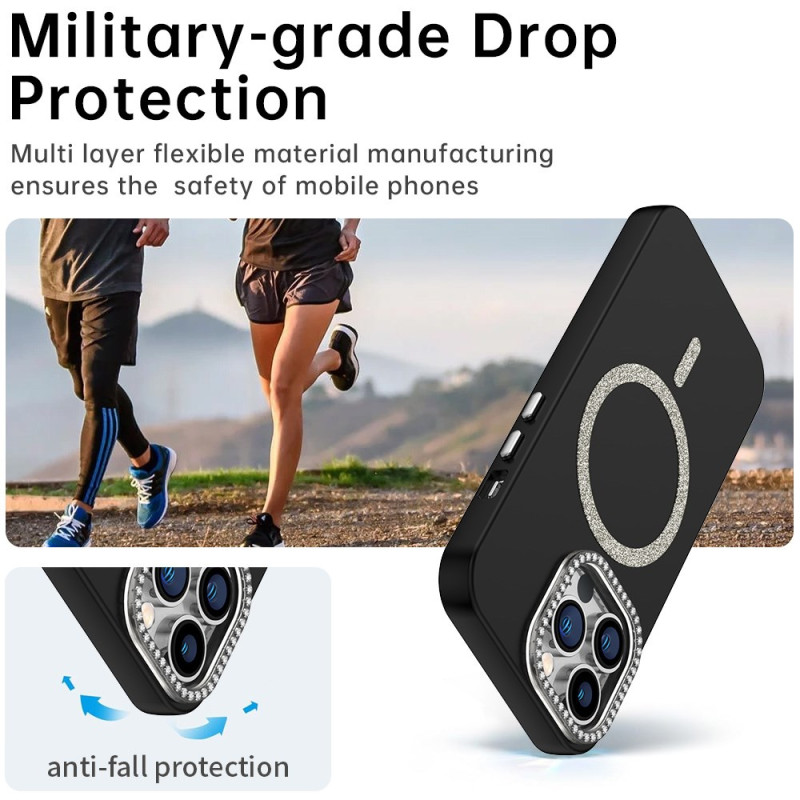Schützen Sie Ihr iPhone 13 Pro elegant mit dieser MagSafe-kompatiblen Hülle. Der mit funkelnden Strasssteinen verzierte Linsenrahmen und das Glitzerfinish verleihen Ihrem Telefon einen luxuriösen Touch und bieten gleichzeitig optimalen Schutz.