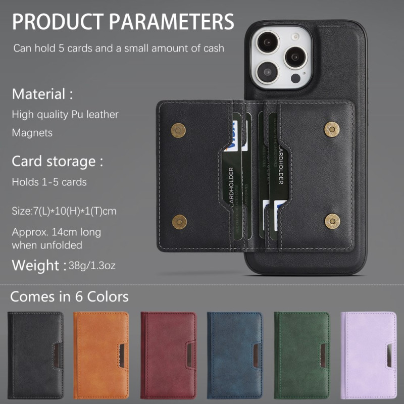 Raffinierte Hülle für das iPhone 13 Pro, die Premium-Schutz mit Funktionalität kombiniert. Ausgestattet mit einem abnehmbaren magnetischen Kartenhalter, einem verstellbaren Standfuß und MagSafe-Kompatibilität für kabelloses Aufladen. Elegantes Bi-Fold-Design.