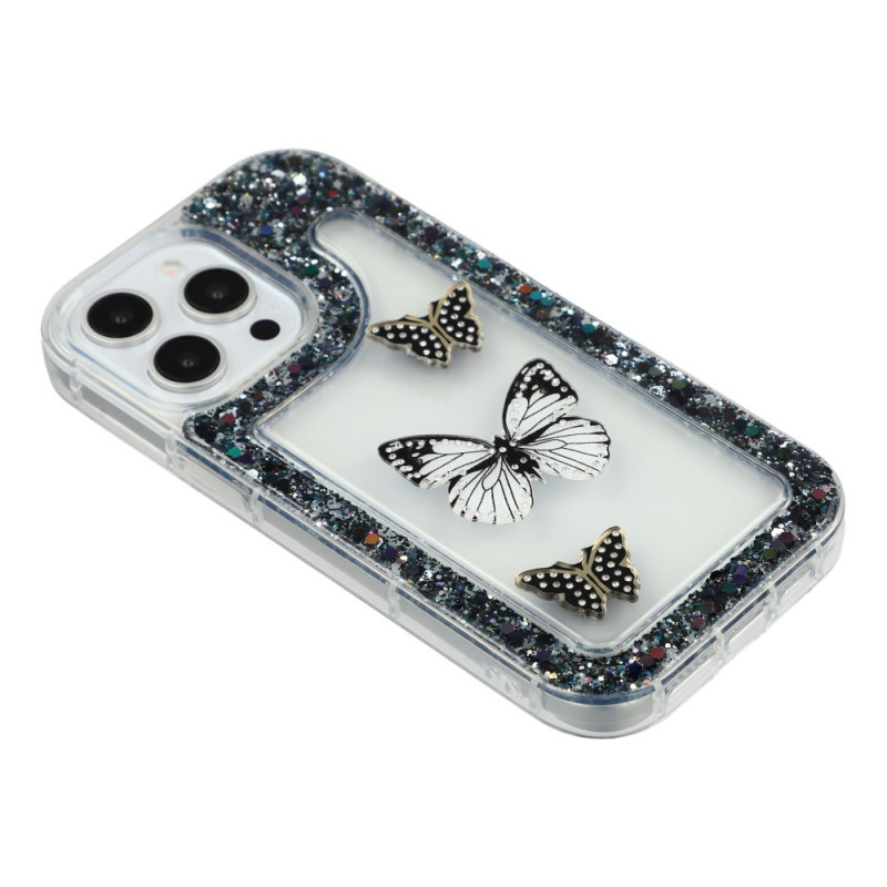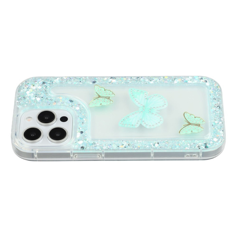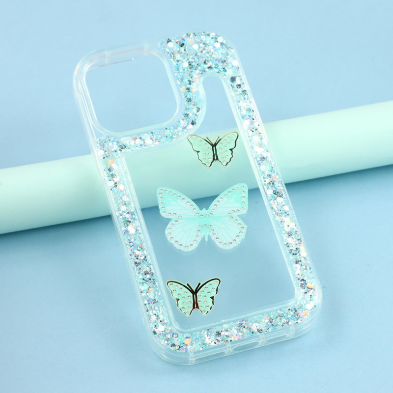Schützen Sie Ihr iPhone 13 Pro elegant mit dieser Hülle, die mit einem wunderschönen 3D-Schmetterling umgeben von glitzernden Pailletten verziert ist. Sie besteht aus weichem TPU mit einer Epoxidharzschicht und bietet optimalen Schutz vor Stößen, Kratzern und täglicher Abnutzung, während sie Ihr Telefon gleichzeitig verschönert.