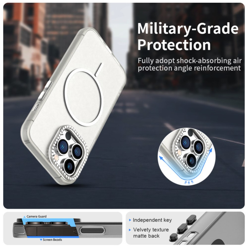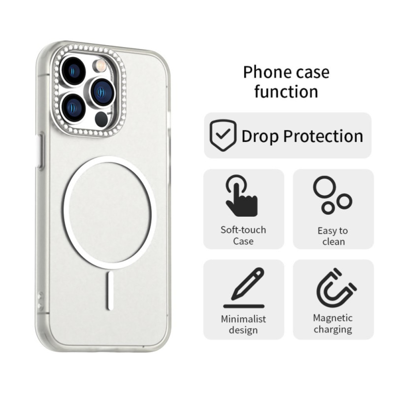 Schützen Sie Ihr iPhone 13 Pro elegant mit dieser MagSafe-kompatiblen Hülle. Das schlanke, robuste Design bietet optimalen Schutz vor alltäglichen Stößen, während der mit Strasssteinen verzierte Linsenrahmen für einen glamourösen Touch sorgt.
