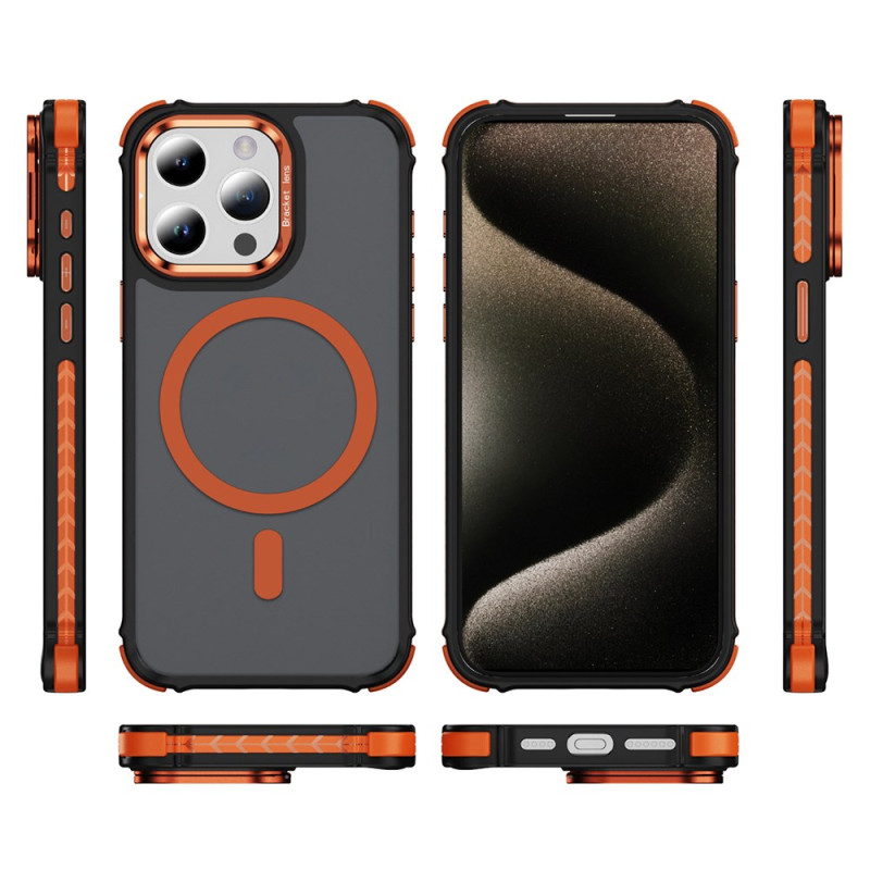 Schützen Sie Ihr iPhone 13 Pro stilvoll mit dieser innovativen Hülle mit integriertem Ständer und abnehmbarem Objektivschutz. Sie ist MagSafe-kompatibel und bietet eine starke magnetische Haftung und eine matte, spurenfreie Oberfläche.