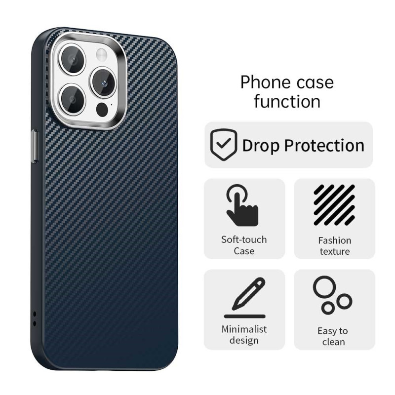 Schützen Sie Ihr iPhone 13 Pro elegant mit dieser Premium-Hybridhülle. Die raffinierte Kohlefasertextur vereint modernen Stil mit optimalem Schutz. Hergestellt aus hochwertigen Materialien, bietet die Hülle einen verbesserten Griff und ist gleichzeitig dünn und leicht.