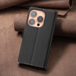 Schützen Sie Ihr iPhone 13 Pro stilvoll mit dieser Hülle aus strukturiertem PU-Leder. Mit RFID-Sperrtechnologie schützt sie Ihre persönlichen Daten und bietet 3 Kartenfächer und ein Bargeldfach. Integrierte Standfunktion für freihändiges Betrachten und sicherer Magnetverschluss.