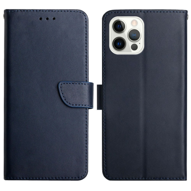 Elegante Brieftasche aus echtem Leder mit edler Nappa-Textur für das iPhone 13 Pro. Kombiniert Premium-Schutz und Funktionalität mit einem integrierten Ständer, einem extrastarken Magnetverschluss und mehreren Kartenfächern.