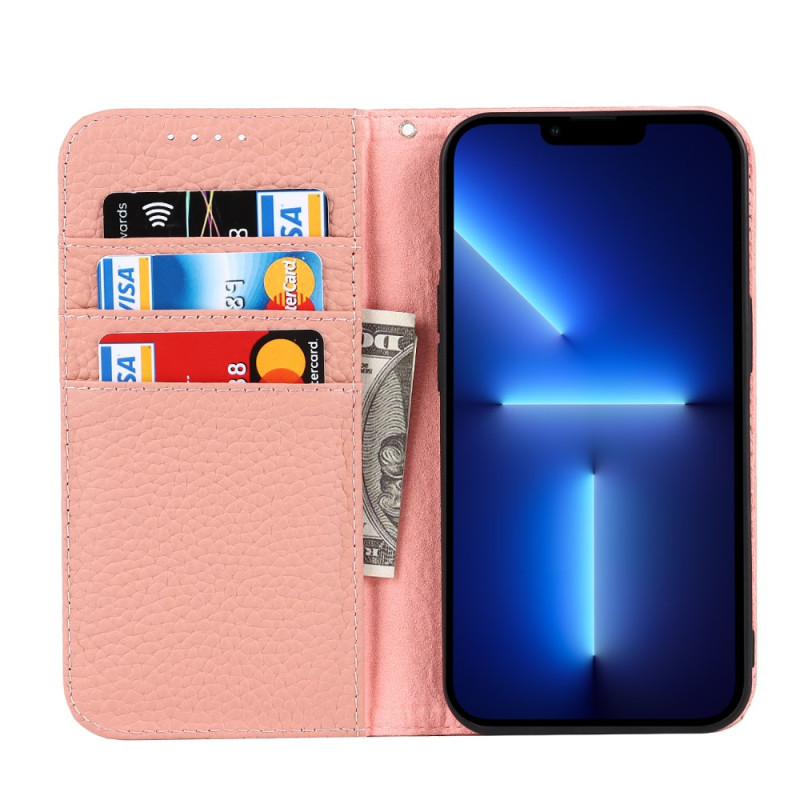 Entdecken Sie die perfekte Kombination aus Eleganz und Zweckmäßigkeit mit dieser Brieftasche aus echtem Leder mit Litschi-Struktur. Sie wurde speziell für das iPhone 13 Pro entworfen und vereint Premium-Schutz, Kartenfach und Ständerfunktion für ein optimales Alltagserlebnis.
