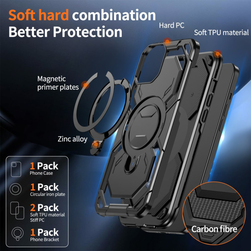 • Starke Kompatibilität: Der integrierte Magnetring ermöglicht eine nahtlose Befestigung an kabellosen Ladegeräten und anderem magnetischen Zubehör.