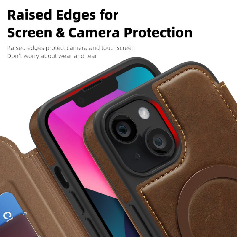 Entdecken Sie unsere MagSafe-kompatible iPhone 13-Hülle mit integriertem Kartenhalter und RFID-Sperrtechnologie. Sie ist aus hochwertigem TPU und PU-Leder gefertigt und bietet einen langlebigen und eleganten Schutz für Ihr Gerät. Die Kartenfächer und die erhöhten Kanten sorgen für Komfort und Sicherheit im Alltag.