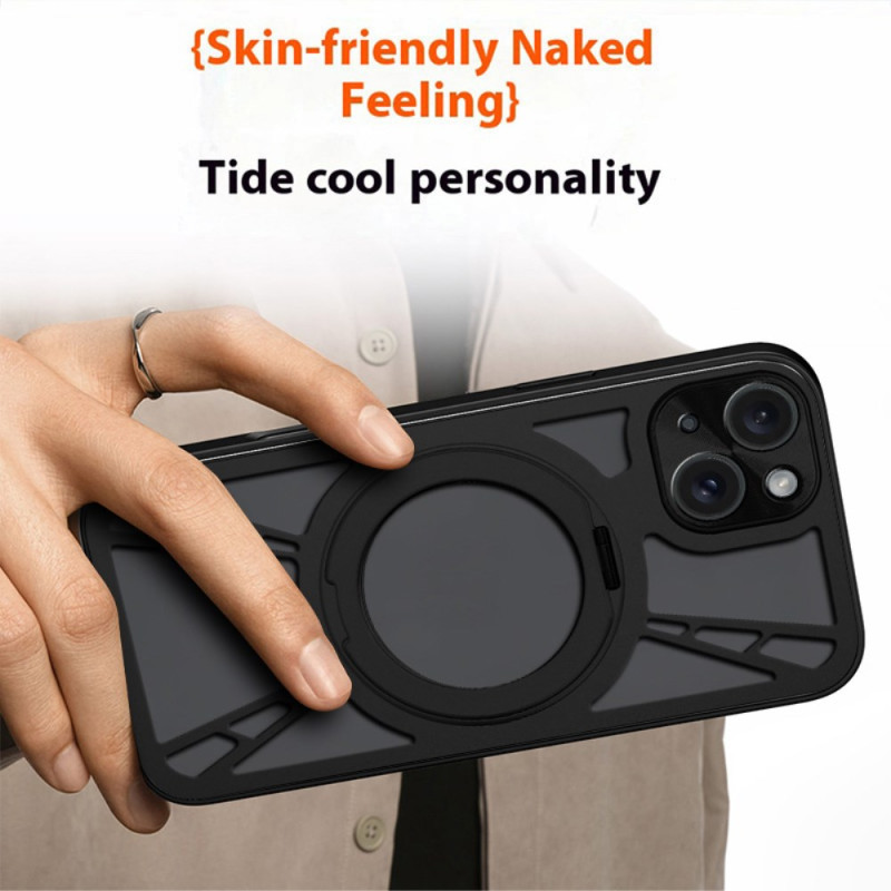 Entdecken Sie unsere innovative Schutzhülle für das iPhone 13. Ausgestattet mit einem praktischen Drehhalter, einer magnetischen Befestigung, die mit MagSafe kompatibel ist, und einem effektiven Wärmeableitungsdesign. Diese Hülle vereint Funktionalität mit optimalem Schutz für Ihr Gerät, mit einer verstärkten Struktur gegen Stürze und einem Schutzrahmen für die Kamera und das Display.