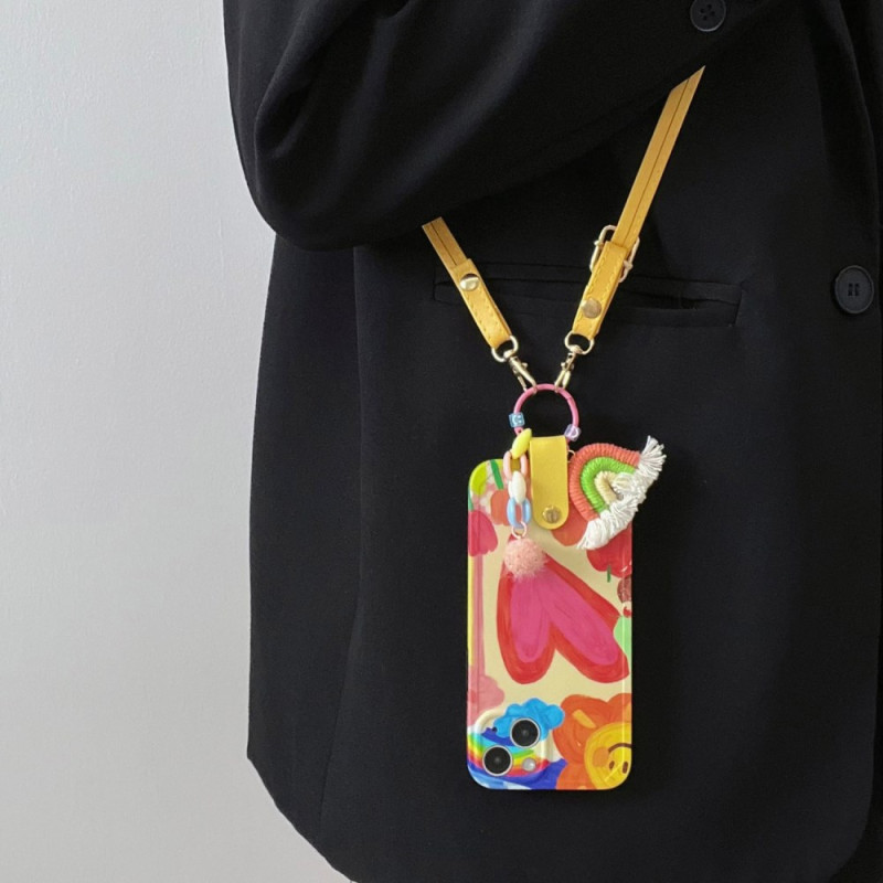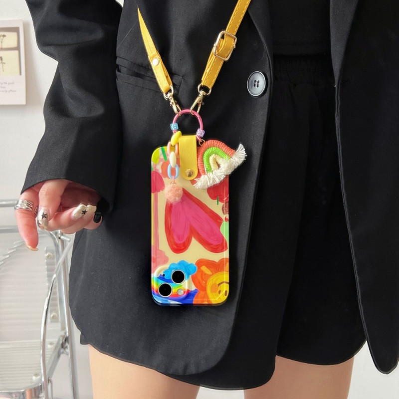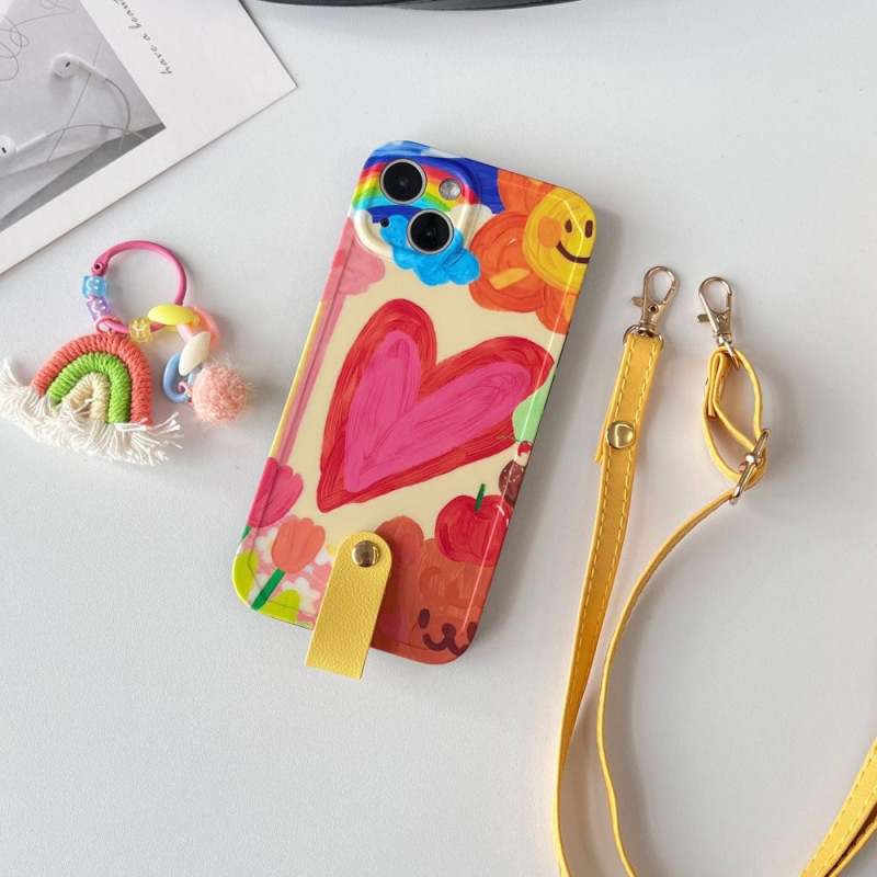 Entdecken Sie unsere elegante Hülle für das iPhone 13, die Stil und Schutz vereint. Mit ihrem Graffiti-Herzmotiv und der Regenbogenverzierung verleiht sie Ihrem Telefon einen Hauch von Fantasie. Der verstellbare Lederriemen sorgt für einen bequemen Transport, während das stoßfeste Design Ihr Gerät im Alltag schützt.