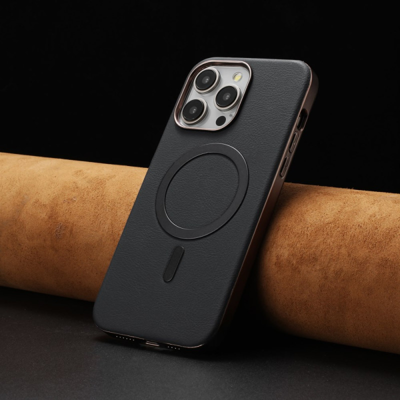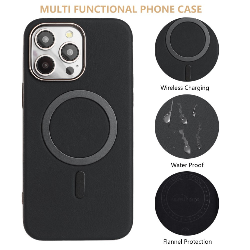 Entdecken Sie unsere elegante und langlebige Hülle für das iPhone 14 Pro Max, die mit MagSafe kompatibel ist. Sie ist aus hochwertigem TPU und PU-Leder gefertigt und bietet optimalen Schutz, während sie gleichzeitig dünn und leicht ist. Ihr elektroplattierter Rahmen verleiht ihr einen Hauch von Stil und erhöht die Stoßfestigkeit.