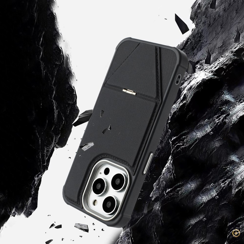 Entdecken Sie unser hochwertiges iPhone 14 Pro Max Case. Sie ist MagSafe-kompatibel und bietet dank ihres Designs aus TPU und PU-Leder optimalen Schutz. Der integrierte Ständer und der Metallrahmen für die Kamera machen sie zu einem vielseitigen und langlebigen Accessoire für Ihr wertvolles Smartphone.