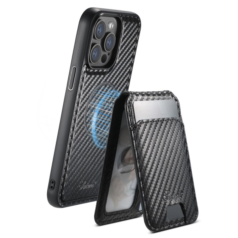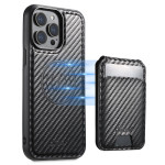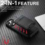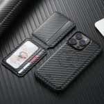 Magnetische 2-in-1-Hülle aus PU-Leder mit Kohlefasertextur und TPU für das iPhone 14 Pro Max. Abnehmbarer Kartenhalter mit 3-4 Steckplätzen, Standfunktion und MagSafe-kompatibel. Eleganter und praktischer Schutz für Ihren Alltag.
