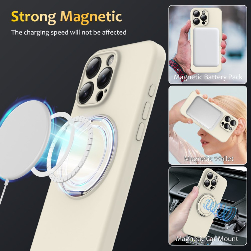 Schützen Sie Ihr iPhone 14 Pro Max mit dieser Premium-Hülle, die mit MagSafe kompatibel ist. Die Hülle verfügt über einen drehbaren Metallring, der als Ständer dient, und bietet so einen besseren Schutz und ist gleichzeitig praktisch für den Alltag. Das elegante Design ist eine Kombination aus festem PC und weichem Silikon.