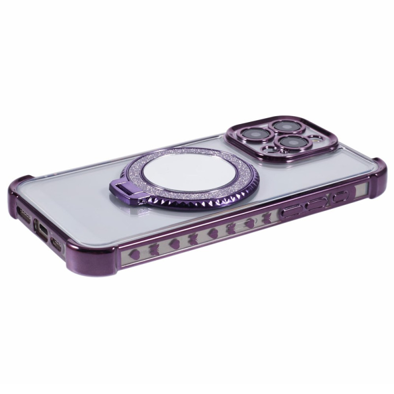 Elegante Hülle aus Premium-TPU für das iPhone 14 Pro Max mit seitlichem Herzmuster, integriertem Ringhalter und praktischem Spiegel. Verstärkter Schutz an allen vier Ecken gegen Stöße und Stürze, während das Design schlank und funktional bleibt.