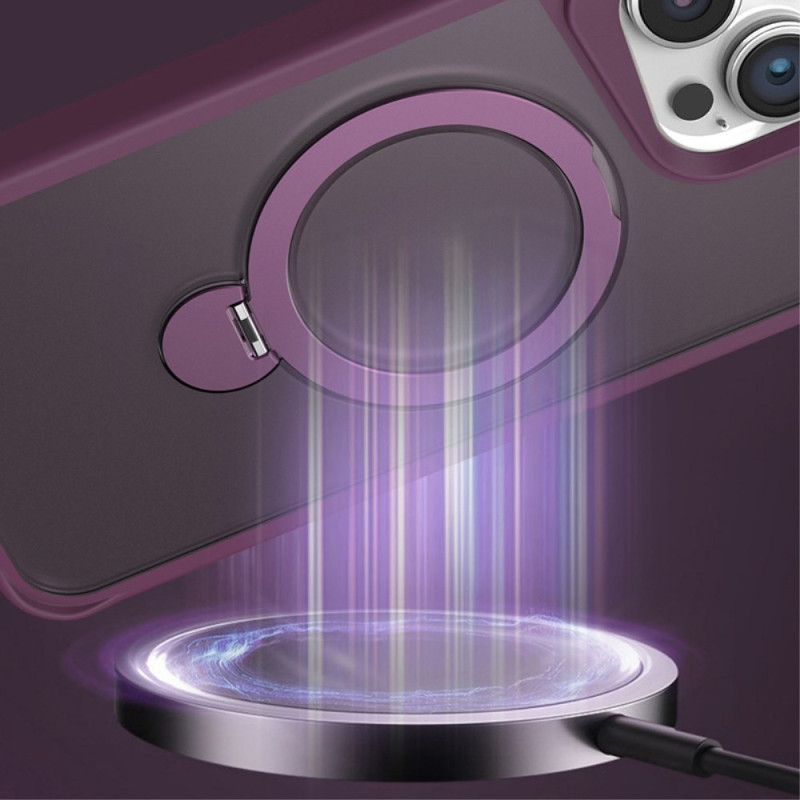 Schützen Sie Ihr iPhone 14 Pro Max stilvoll mit dieser innovativen magnetischen Schutzhülle. Mit einem drehbaren Multifunktionsring, der als Ständer dient, und MagSafe-Kompatibilität vereint sie robusten Schutz mit praktischer Alltagstauglichkeit.