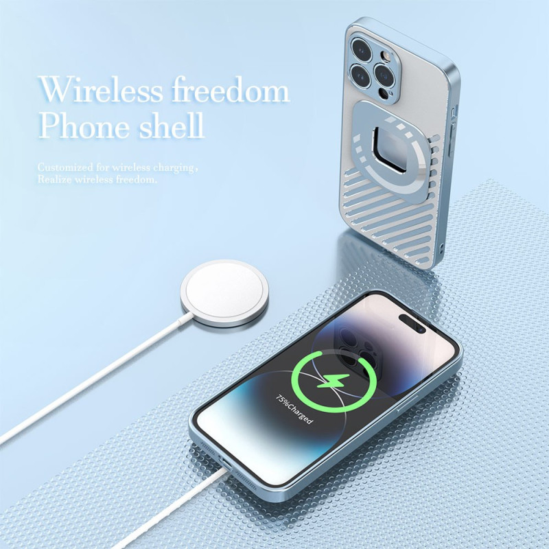Coque magnétique premium avec design ajouré pour une dissipation thermique optimale. Compatible MagSafe avec 16 aimants N52H ultra-puissants. Protection renforcée anti-chute en TPU, PC et alliage métallique pour votre iPhone 14 Pro Max.