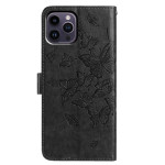 Elegante Brieftasche mit aufgedrucktem Schmetterlingsmotiv für das iPhone 14 Pro. Hergestellt aus hochwertigem PU-Leder, bietet sie dauerhaften Schutz und ein praktisches Design. Mit dem integrierten Ständer, dem Magnetverschluss und der Handschlaufe vereint diese Tasche Funktionalität und Stil für den optimalen täglichen Gebrauch.