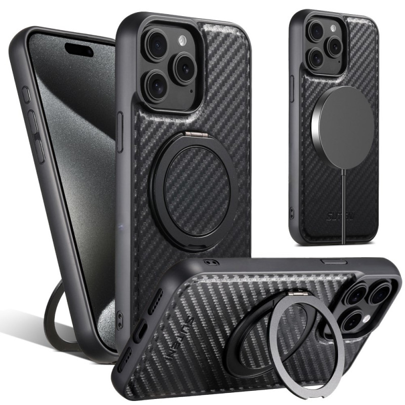 Entdecken Sie unsere elegante und funktionale Hülle für das iPhone 14 Pro. Sie verfügt über einen um 360° drehbaren Ständer und bietet MagSafe-Kompatibilität für bequemes kabelloses Laden. Die Textur aus Kohlefaser vereint Stil und Haltbarkeit, während der umfassende Schutz Ihr Gerät wie neu aussehen lässt. Genießen Sie eine optimale Benutzererfahrung mit präzisen Schnitte für einen einfachen Zugriff auf alle Funktionen.