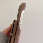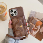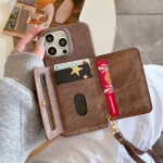 Hochwertige Hülle aus strukturiertem PU-Leder für das iPhone 14 Pro. Praktisches dreigeteiltes Design mit Kartenfächern, integrierter Standfunktion und Schminkspiegel. Kameraschutz und Handschlaufe aus Leder für den bequemen und sicheren täglichen Gebrauch.