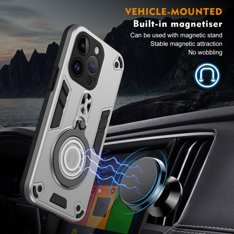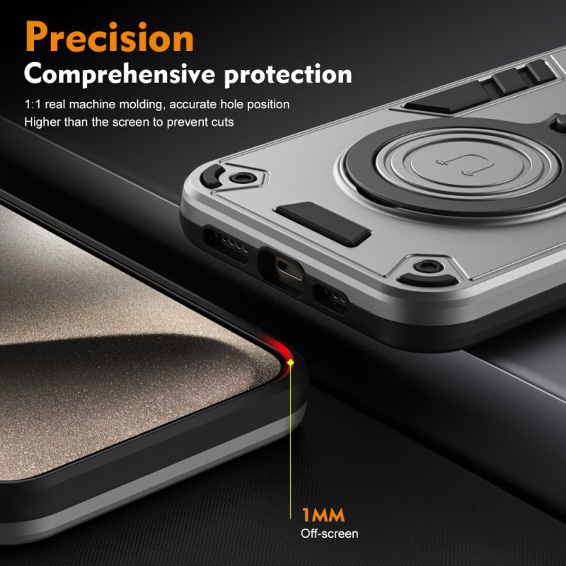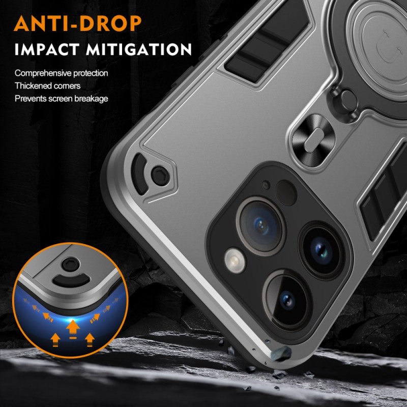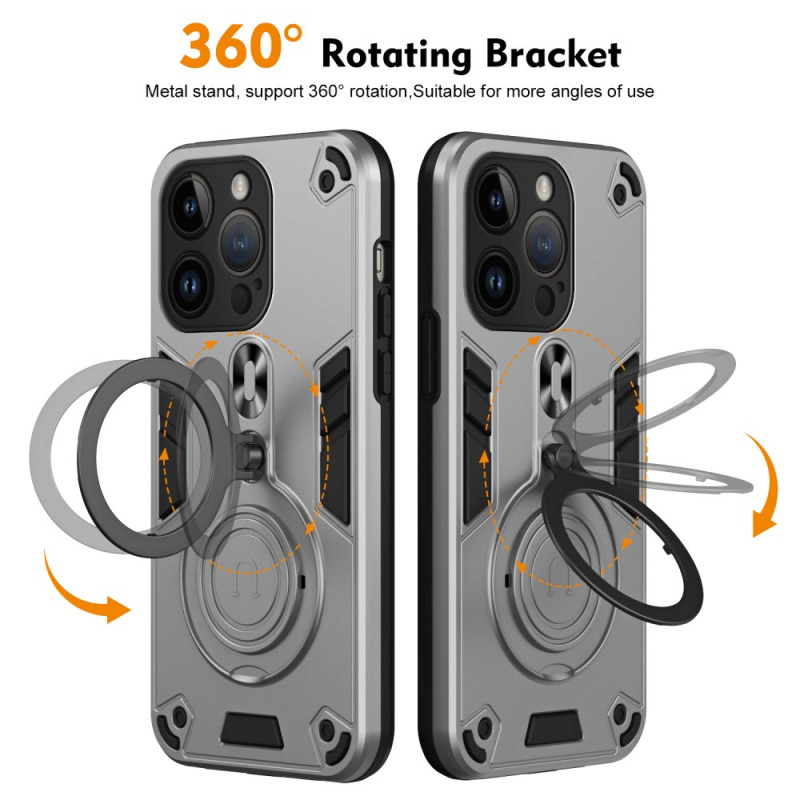 Entdecken Sie unsere innovative Schutzhülle für das iPhone 14 Pro mit einem um 360° drehbaren Ständer und einem fortschrittlichen Fallschutz. Sie ist aus hochwertigen Materialien gefertigt, besonders langlebig und mit magnetischen Autohalterungen kompatibel. Genießen Sie freihändiges Betrachten und optimalen Schutz für Ihren Bildschirm.
