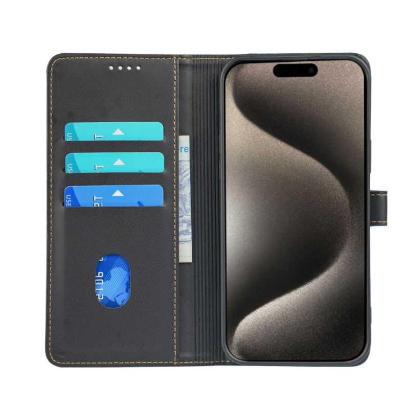 Entdecken Sie unsere elegante Lederhülle für das iPhone 14 Pro, die Stil und Funktionalität vereint. Mit ihrem Kleeblattmuster und dem praktischen Magnetverschluss bietet diese Hülle umfassenden Schutz und Platz für Ihre Karten. Nutzen Sie außerdem die Standfunktion für ein bequemes Betrachten.