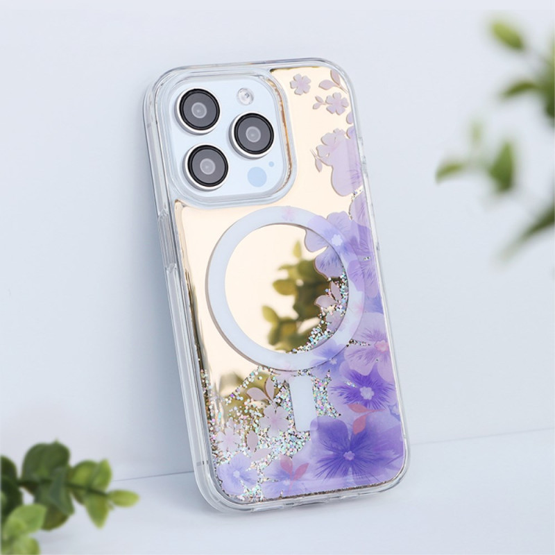 Entdecken Sie unsere elegante Hülle für das iPhone 14 Pro, die Stil und Schutz vereint. Mit einem raffinierten Blumenmuster und einer praktischen Spiegelfläche kombiniert diese Hülle flexibles TPU mit robustem PC und bietet so optimalen Schutz vor Stürzen aus bis zu 1,5 m Höhe. Dank des integrierten Magnetrings ist sie mit dem MagSafe-Ladevorgang kompatibel und bietet vollen Zugriff auf die Funktionen Ihres Telefons.
