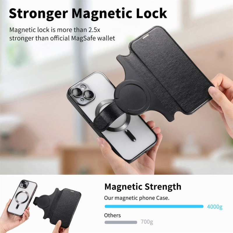 Découvrez notre housse premium pour iPhone 14, alliant style et protection. Fabriquée en cuir PU élégant et TPU transparent, elle offre une protection optimale tout en restant fine. Profitez de fonctionnalités pratiques comme un support ajustable, des emplacements pour cartes et la technologie RFID. Compatible MagSafe pour une charge sans fil facile.