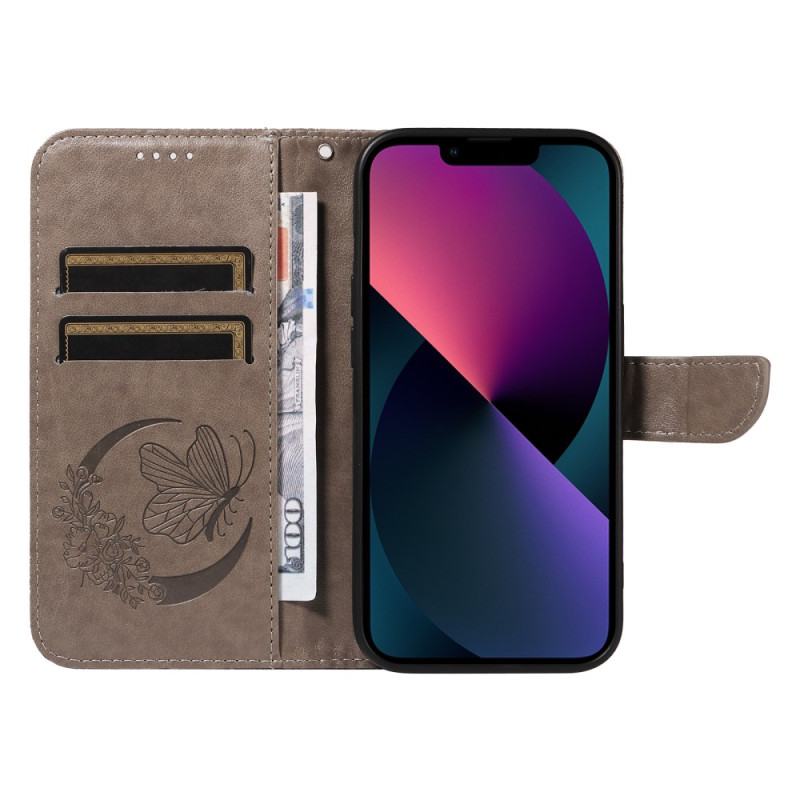 Entdecken Sie unsere elegante Hülle für das iPhone 14 aus hochwertigem PU-Leder. Sie ist mit einem aufgedruckten Schmetterlingsmotiv versehen und bietet dank ihrer Innenschale aus mattem TPU einen robusten Schutz. Mit Kartenschlitzen, einem Geldscheinfach und einer Ständerfunktion vereint diese Hülle Praktikabilität und Stil für ein optimales Nutzererlebnis.