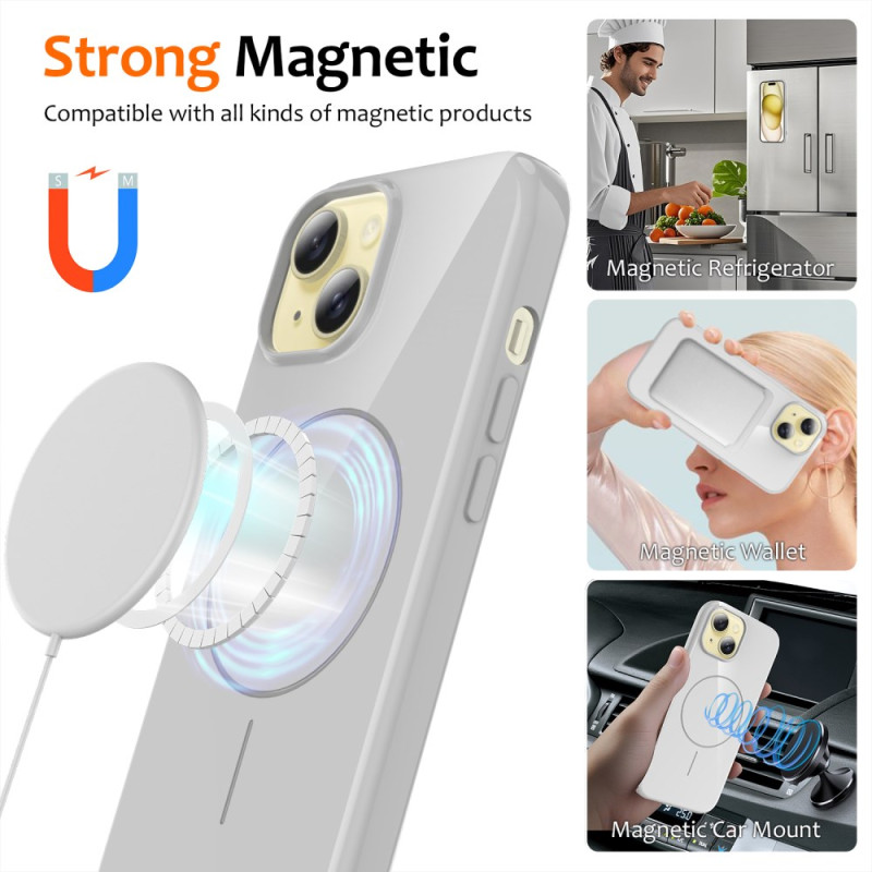 Entdecken Sie unsere magnetische Hülle für das iPhone 14, die mit MagSafe kompatibel ist. Sie ist aus hochwertigem TPU gefertigt und bietet optimalen Schutz vor Stößen und Kratzern. Mit ihrem integrierten Magnetring passt sie perfekt zu kabellosen Ladegeräten und magnetischen Halterungen. Die erhöhte Hülle schützt den Bildschirm und die Kamera...