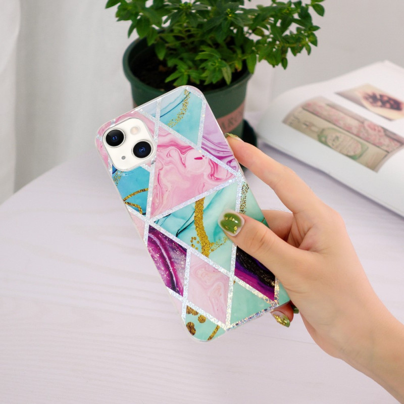Wählen Sie diese auffällige geometrische Marmorhülle, um Ihr iPhone 15 Plus elegant zu schützen.