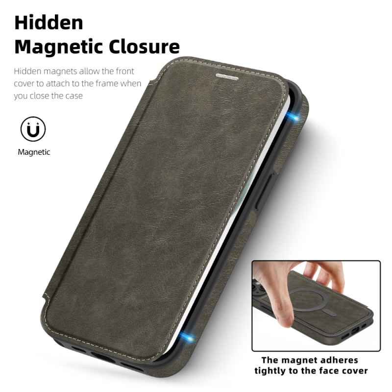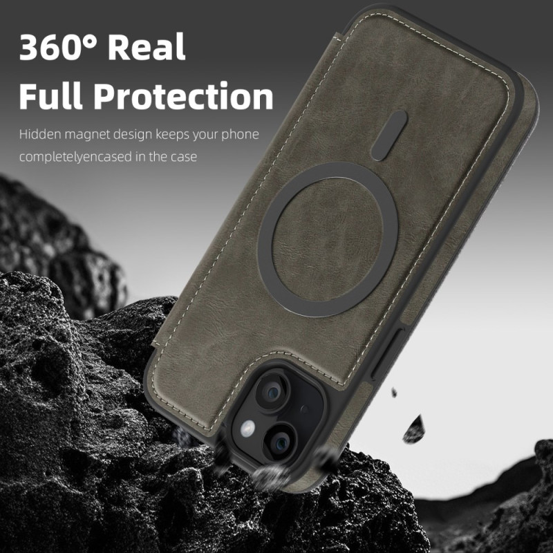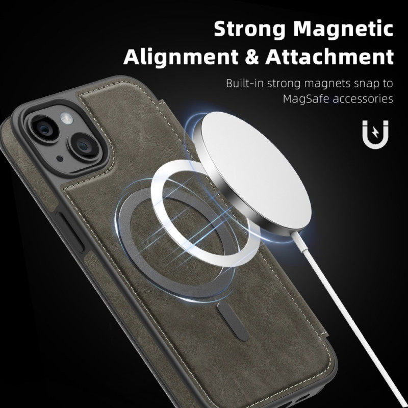 Entdecken Sie unsere Hülle für das iPhone 15 Plus, die Stil und Funktionalität vereint. Sie ist MagSafe-kompatibel und bietet RFID-Schutz, Kartenfächer und eine strapazierfähige Konstruktion aus Leder und TPU. Schützen Sie Ihr Gerät mit Eleganz und Zweckmäßigkeit.