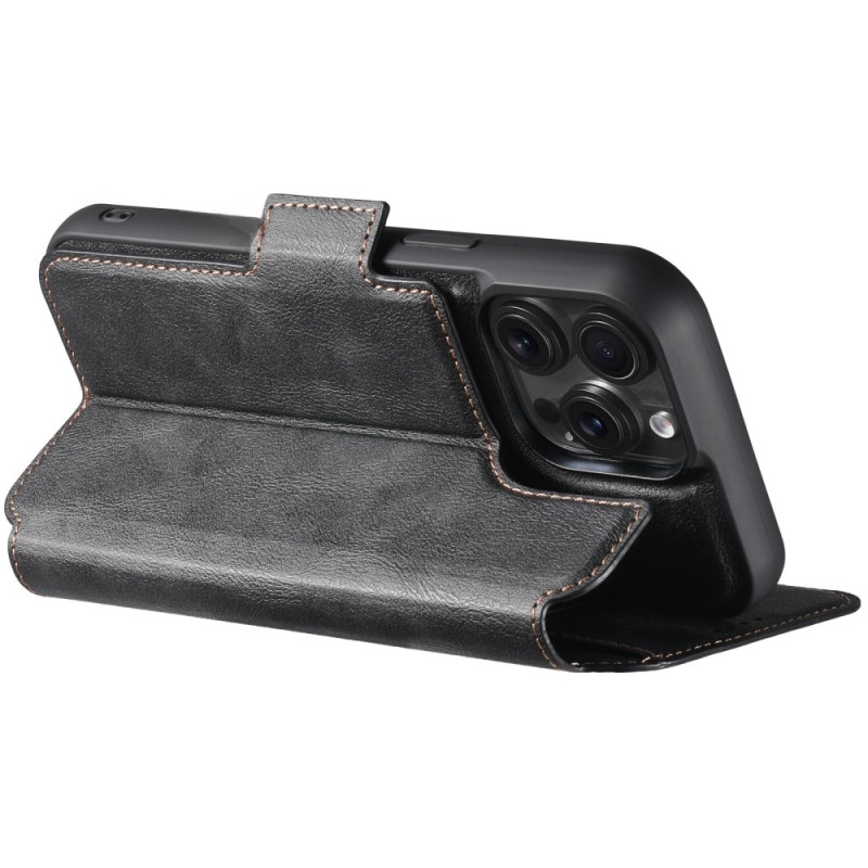 Entdecken Sie unsere elegante und funktionale Hülle für das iPhone 15 Pro Max. Sie verfügt über eine magnetische Absorption, die mit MagSafe kompatibel ist, und bietet dauerhaften Schutz aus strukturiertem PU-Leder und TPU. Das abnehmbare 2-in-1-Design kombiniert eine schlanke Hülle mit einer praktischen Brieftasche mit Fächern für Karten und Geldscheine.