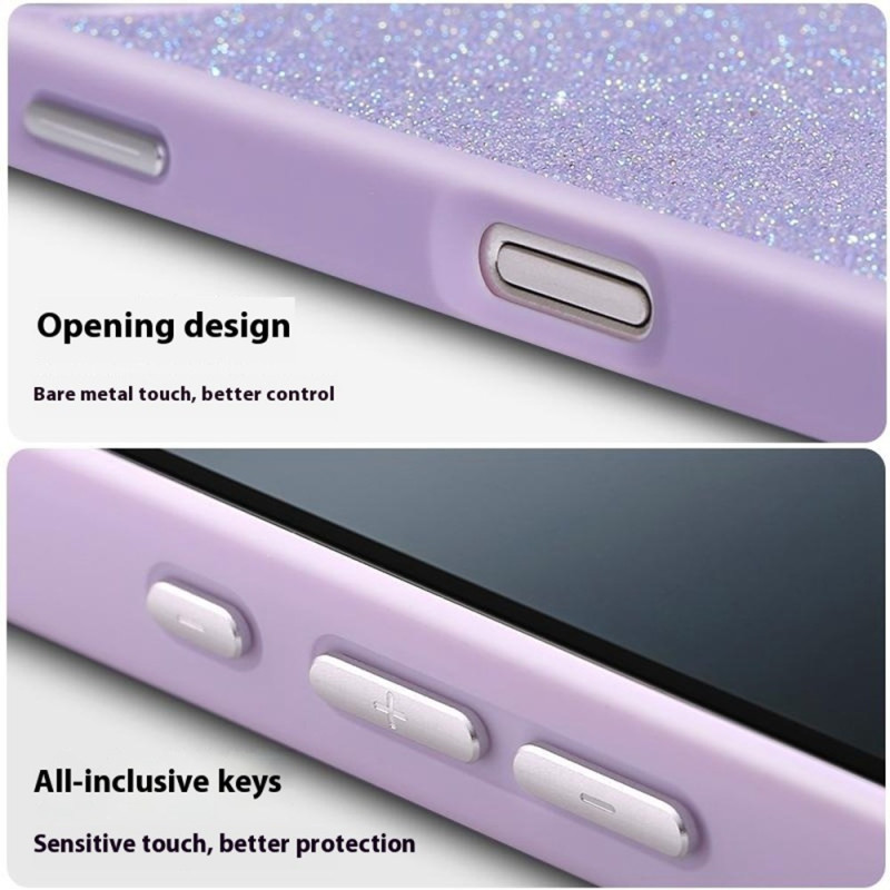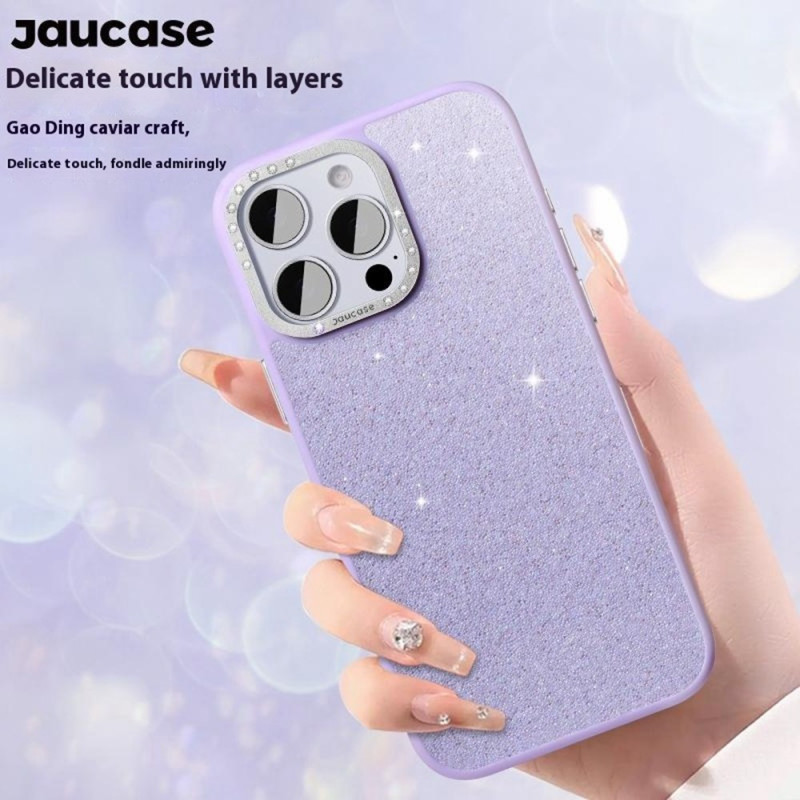 • Eleganter Objektivrahmen: Der Bereich des Kameraobjektivs, der mit einem Metallrahmen mit funkelnden Strasssteinen verziert ist.