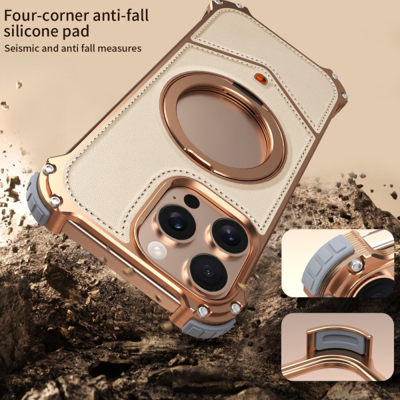 Entdecken Sie unsere elegante Hülle für das iPhone 15 Pro Max. Mit einem randlosen Design aus einer Aluminiumlegierung, die mit PU-Leder überzogen ist, bietet sie eine minimalistische, langlebige Ästhetik. Die um 360° drehbare Halterung ermöglicht eine praktische freihändige Nutzung. Der luftgepolsterte Schutz an den Ecken und die verstärkte magnetische Kompatibilität sorgen für optimale Sicherheit und effizientes kabelloses Laden.