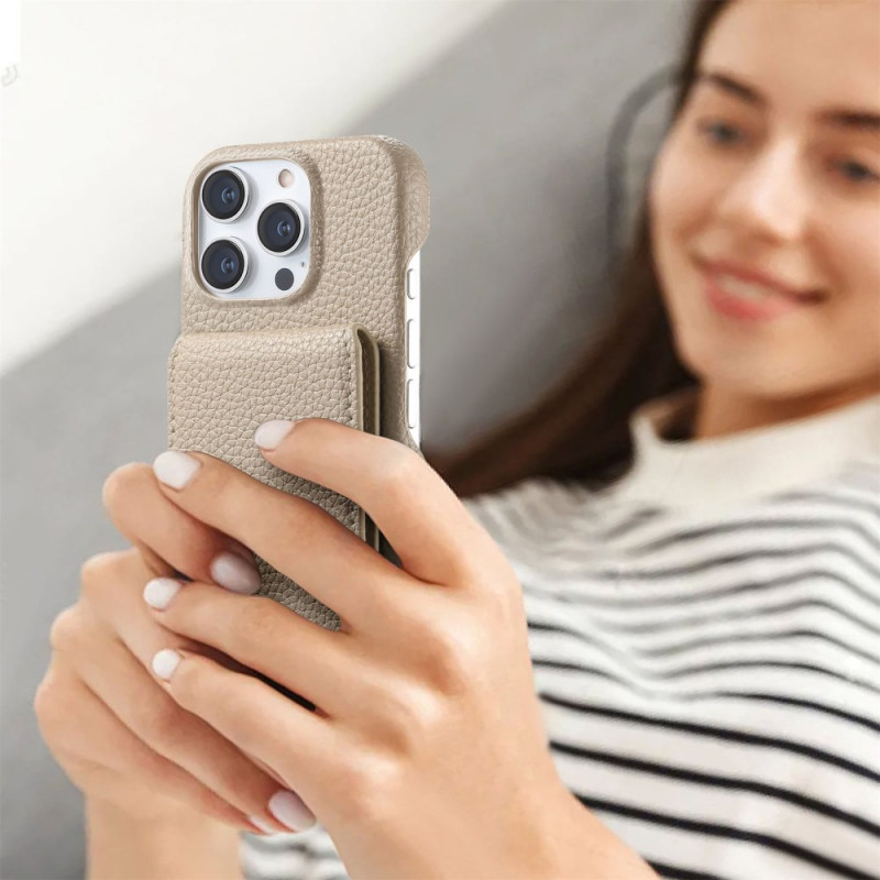 Entdecken Sie unsere Premium-Hülle für das iPhone 15 Pro Max, die Schutz und Funktionalität vereint. Diese Hülle aus strukturiertem Leder verfügt über einen Kartenhalter mit RFID-Sperrtechnologie und bietet eine überlegene Stoßdämpfung. Die versteckten Fächer, der Multi-Winkelhalter und die Widerstandsfähigkeit gegen Fingerabdrücke und Wasser machen sie zum perfekten Accessoire für Ihr Smartphone.