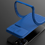 Die CamShield-Hülle von Nillkin ist perfekt für Ihr iPhone 15 Pro geeignet und verfügt über einen verschiebbaren Fotomodulschutz, der für mehr Diskretion sorgt.