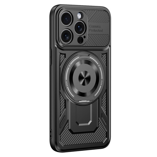 MagSafe iPhone 15 Pro Cover mit drehbarer Halterung im Metallic-Stil
