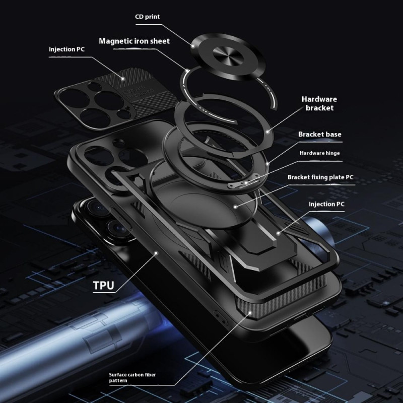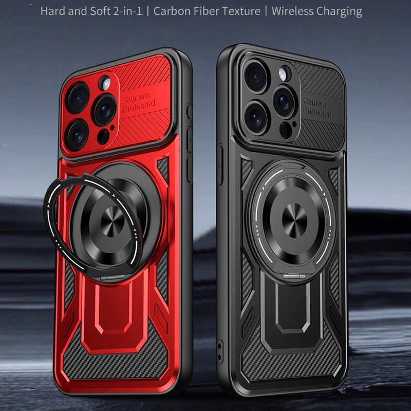 Entdecken Sie unsere ultimative Schutzhülle für das iPhone 15 Pro. Sie verfügt über eine um 360° drehbare Halterung, ist MagSafe-kompatibel und bietet dank ihrer doppelten TPU- und PC-Schicht militärischen Schutz. Ihr ergonomisches Design mit Karbontextur vereint Stil und Funktionalität für den optimalen täglichen Gebrauch.