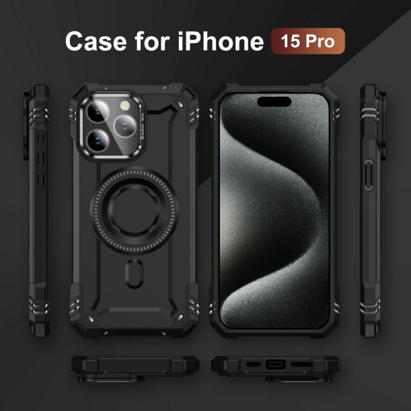 Entdecken Sie unsere robuste magnetische Hülle für das iPhone 15 Pro, die militärischen Schutz mit innovativen Funktionen verbindet. Mit einem verstellbaren Ständer, einem verstärkten Schutz für die Kamera und kompatibel mit MagSafe-Zubehör bietet diese Hülle ein optimales Nutzererlebnis und gleichzeitig maximalen Schutz für Ihr Gerät.