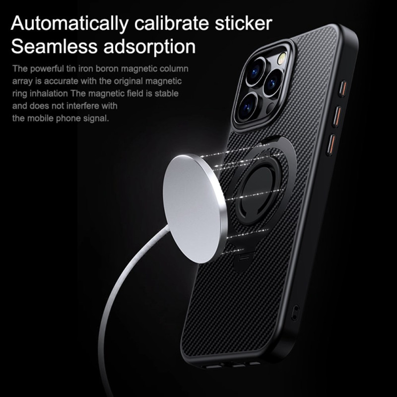 Entdecken Sie unsere Premium-Hülle für das iPhone 15 Pro, die Stil und Schutz vereint. Mit ihrer Kohlefasertextur, dem um 360° drehbaren Ständer und der MagSafe-Kompatibilität sorgt sie für ein optimales Nutzererlebnis. Hergestellt aus TPU und PC, bietet sie maximalen Schutz vor Stößen und Kratzern.