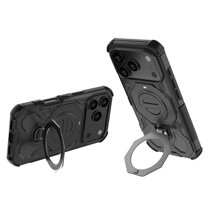 Ausgestattet mit einem drehbaren Metallständer und magnetischer Kompatibilität, vereint diese Hülle für das iPhone 17 Pro Max Vielseitigkeit und Robustheit. Die Hülle aus festem PC und weichem TPU bietet zuverlässigen Schutz vor Stößen und Stürzen, ist aber gleichzeitig leicht und liegt gut in der Hand. Der um 360° drehbare Standfuß ermöglicht es, das Telefon in verschiedenen Winkeln aufzustellen, um bequem Videos anzusehen oder Anrufe zu tätigen. Dank des integrierten Magnetsystems lässt sie sich problemlos an MagSafe-Ladegeräte und kompatible Autohalterungen anbringen.