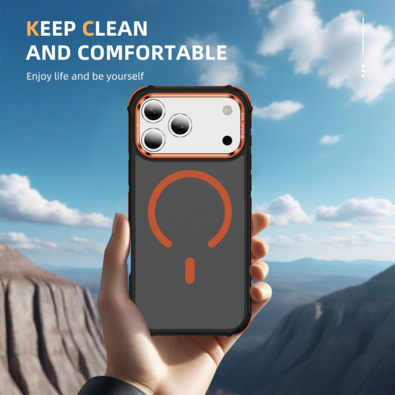 Bieten Sie Ihrem iPhone 17 Pro mit dieser Hülle, die modernes Design und Funktionalität vereint, einen robusten Schutz. Sie ist aus hochwertigem Kunststoff und TPU gefertigt und bietet Stoßdämpfung und einen Rundum-Schutz vor Stößen. Die Linsenabdeckung aus Metall lässt sich leicht in einen praktischen Ständer verwandeln, sodass Sie Videos oder Videogespräche freihändig genießen können. Die matte Oberfläche ist resistent gegen Fingerabdrücke und sorgt dafür, dass Ihr Handy den ganzen Tag lang sauber bleibt. Die Hülle ist mit MagSafe kompatibel und bietet einen sicheren Halt für das kabellose Aufladen und die Verwendung von magnetischem Zubehör. Außerdem bieten die verstärkten Ecken mit Airbags zusätzlichen Schutz vor alltäglichen Stürzen und Stößen.