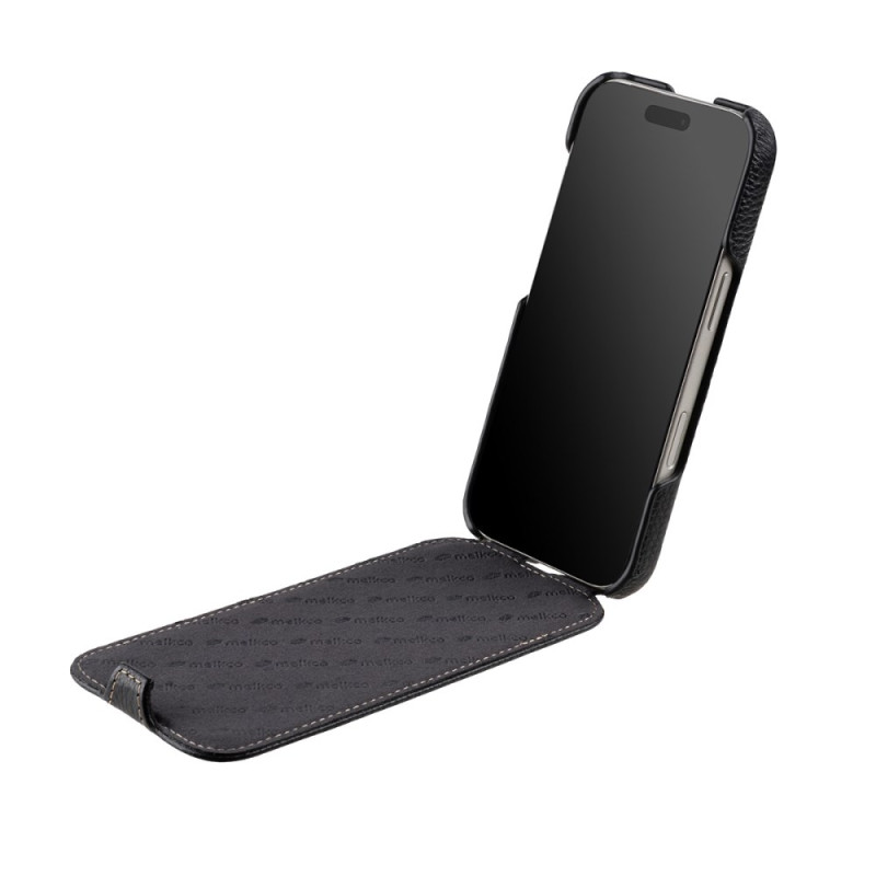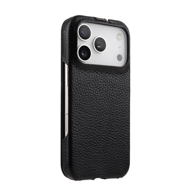 Die MELKCO Hülle für das iPhone 17 Pro vereint Raffinesse und Zweckmäßigkeit. Sie besteht aus echtem, strukturiertem Rindsleder, das mit einer steifen PC-Basis kombiniert ist, um einen dauerhaften Schutz zu gewährleisten. Das Design mit vertikaler Klappe, die sich nach unten öffnet, ermöglicht einen schnellen und intuitiven Zugriff auf den Bildschirm und erleichtert gleichzeitig die einhändige Bedienung. Dank ihrer integrierten Magnete ist sie MagSafe-kompatibel und ermöglicht ein reibungsloses kabelloses Aufladen und die Verwendung von magnetischem Zubehör, ohne dass die Hülle entfernt werden muss. Die Innenseite aus weicher Mikrofaser schützt das Handy vor Kratzern, während die erhöhten Kanten den Bildschirm und das Fotomodul sicher halten.