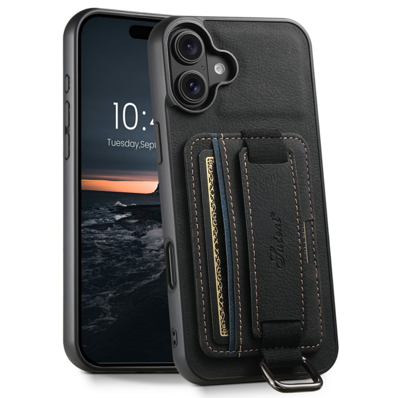 Die Retro-Hülle SUTENI für das iPhone 17 vereint Eleganz und Praktikabilität und besticht durch ihre Verarbeitung aus PU-Leder mit Litschi-Textur, die einen schicken und raffinierten Stil bietet. Das Hybriddesign aus TPU und PC mit eingenähten Verstärkungen schützt effektiv vor alltäglichen Stößen und Stürzen. Auf der Rückseite befinden sich Fächer, in denen Sie Ihre wichtigsten Karten immer griffbereit haben, während der elastische Riemen aus Nylon und Leder als praktischer Kickstand für die einhändige Nutzung oder das freihändige Betrachten von Videos dient. Die hochgezogenen Ränder sichern die Kamera, und am integrierten Metallring lässt sich ein Riemen für den einfachen Transport befestigen.