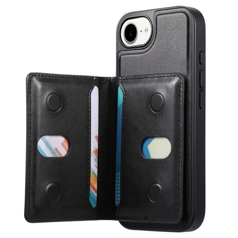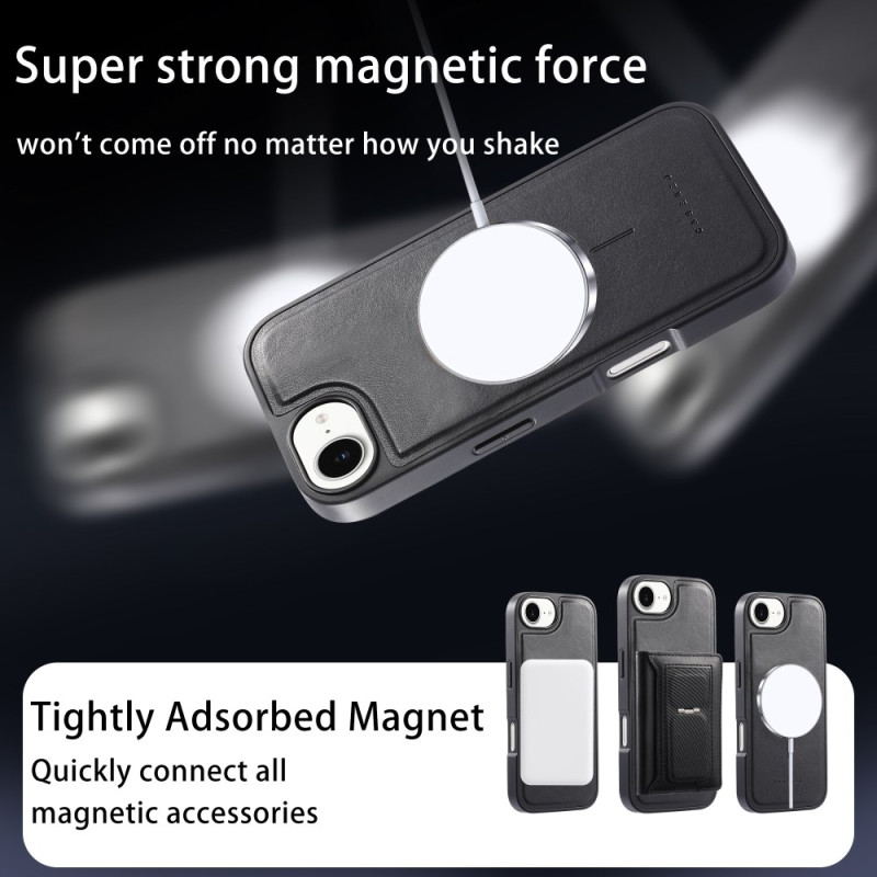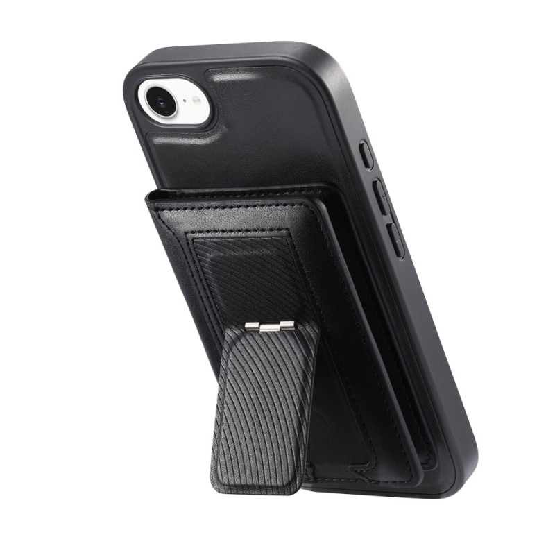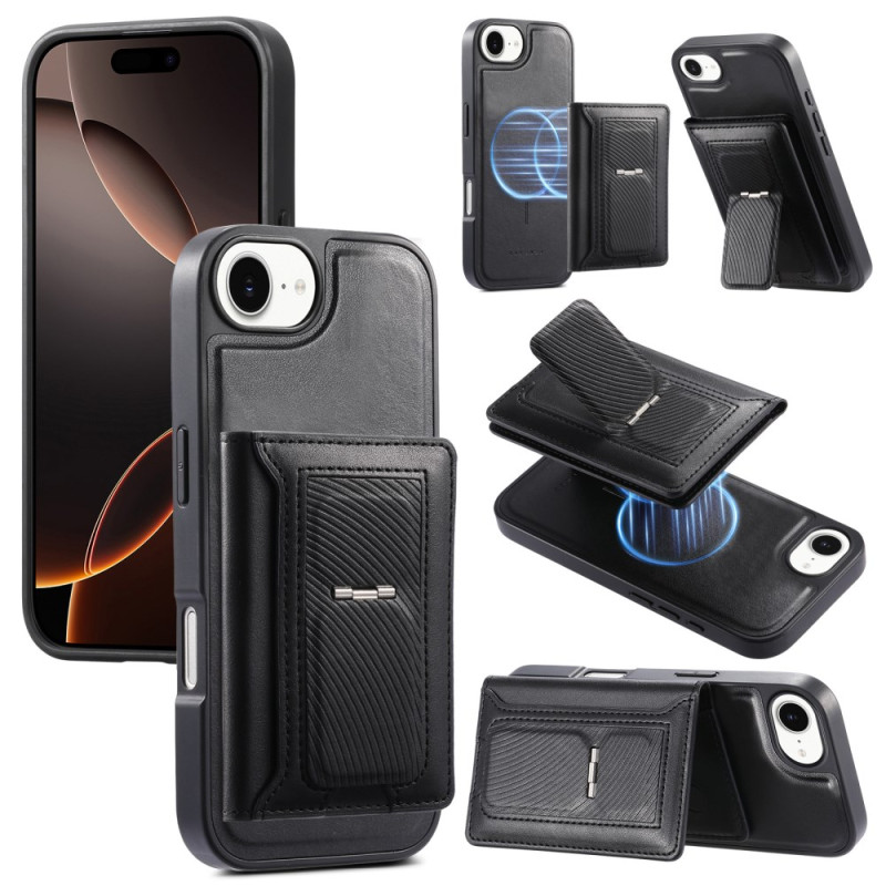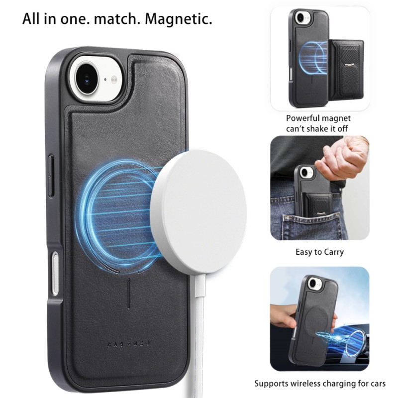 Coque multifonctionnelle pour iPhone 17e/16e avec porte-cartes magnétique amovible et support intégré. Compatible MagSafe pour une utilisation optimale avec tous vos accessoires magnétiques. Protection complète et design pratique pour le quotidien.