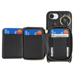 Coque multifonction en cuir PU avec portefeuille zippé, porte-cartes, support intégré et anneau de maintien. Comprend une bandoulière ajustable pour un transport mains libres. Protection complète contre les chocs et rayures.
