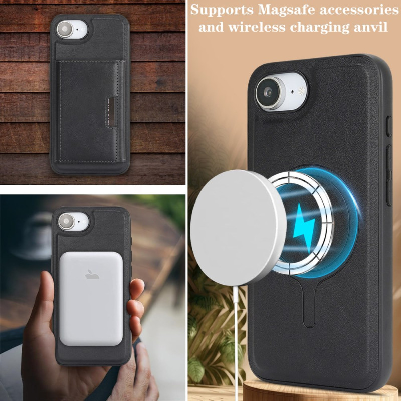 Découvrez l'étui multifonction pour iPhone 17E / 16E : porte-cartes détachable magnétique, support ajustable et protection renforcée. Compatible MagSafe avec aimants haute performance N52. Design 2-en-1 pratique pour ranger cartes et espèces.