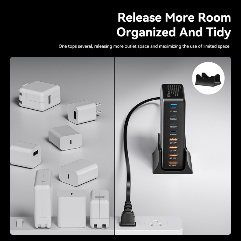 Découvrez la puissance ultime avec ce chargeur de bureau GaN 320W offrant 8 ports de charge simultanés (4 USB-C + 4 USB-A). Technologie GaN avancée pour un format compact et des performances exceptionnelles. Port USB-C principal jusqu'à 100W pour charger rapidement vos appareils les plus exigeants.