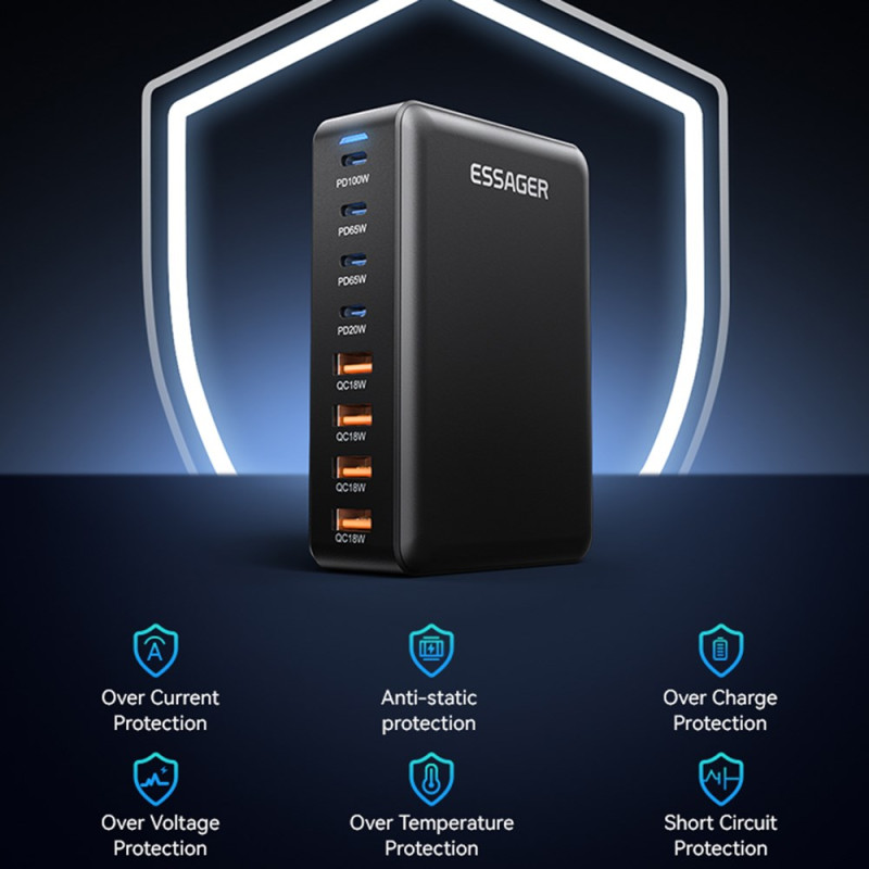Chargeur de Bureau 8 Ports 320W GaN ESSAGER - Prise US